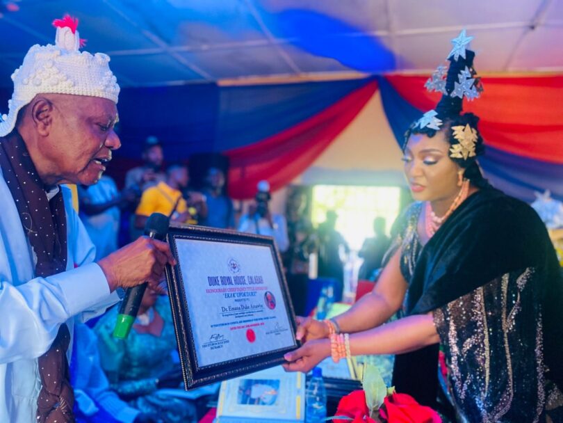 November 22, 2025, was a day when Calabar, Cross River, stood still as the Duke Royal House – one of the most prominent royal houses in the Efik Eburutu Kingdom, driving development and cultural continuity – formally conferred the distinguished title of Eka Ufok Duke (Mother of Duke House) on Chief Dr. Emana Duke Amawhe during a culturally significant ceremony attended by traditional leaders, government officials, and community representatives. Several other distinguished personalities were also honored, reflecting the community’s broader recognition of service and contribution.