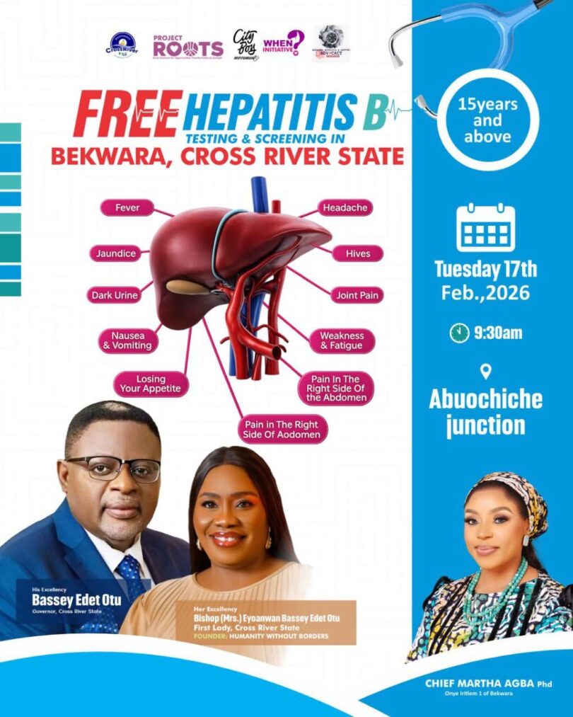 Residents of Bekwarra Local Government Area will tomorrow benefit from a Free Hepatitis B Testing and Screening Exercise sponsored by Chief Dr. Martha Agba, Onyiritem 1 of Bekwarra.